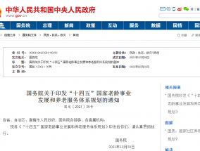 国务院日前印发《“十四五”国家老龄事业发展和养老服务体系规划》,规划涉及实施渐进式延迟法定退休年龄、公办养老机构数量、“子女网上...